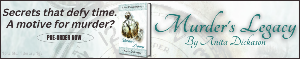 As a Texas author, many of Anita’s books are based in Texas, or there is a link to Texas. When she stepped outside of the Tracker novels and wrote Not Dead and the Tori Winters Mysteries series, she set them in the small Texas communities of Meridian and Granbury, respectively.