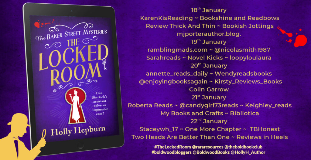 The Locked Room drops us back into Harriet White’s world after a near-fatal case on the Norfolk Fens. Harriet is ready to retreat to the relative safety of her bank job on Baker Street, until a provocative letter appears in The Times, publicly challenging Sherlock Holmes to solve an “impossible” crime in seven days. When a jewel theft from a supposedly locked Mayfair room hits the headlines, Harriet’s curiosity—and sense of justice—prove impossible to ignore.